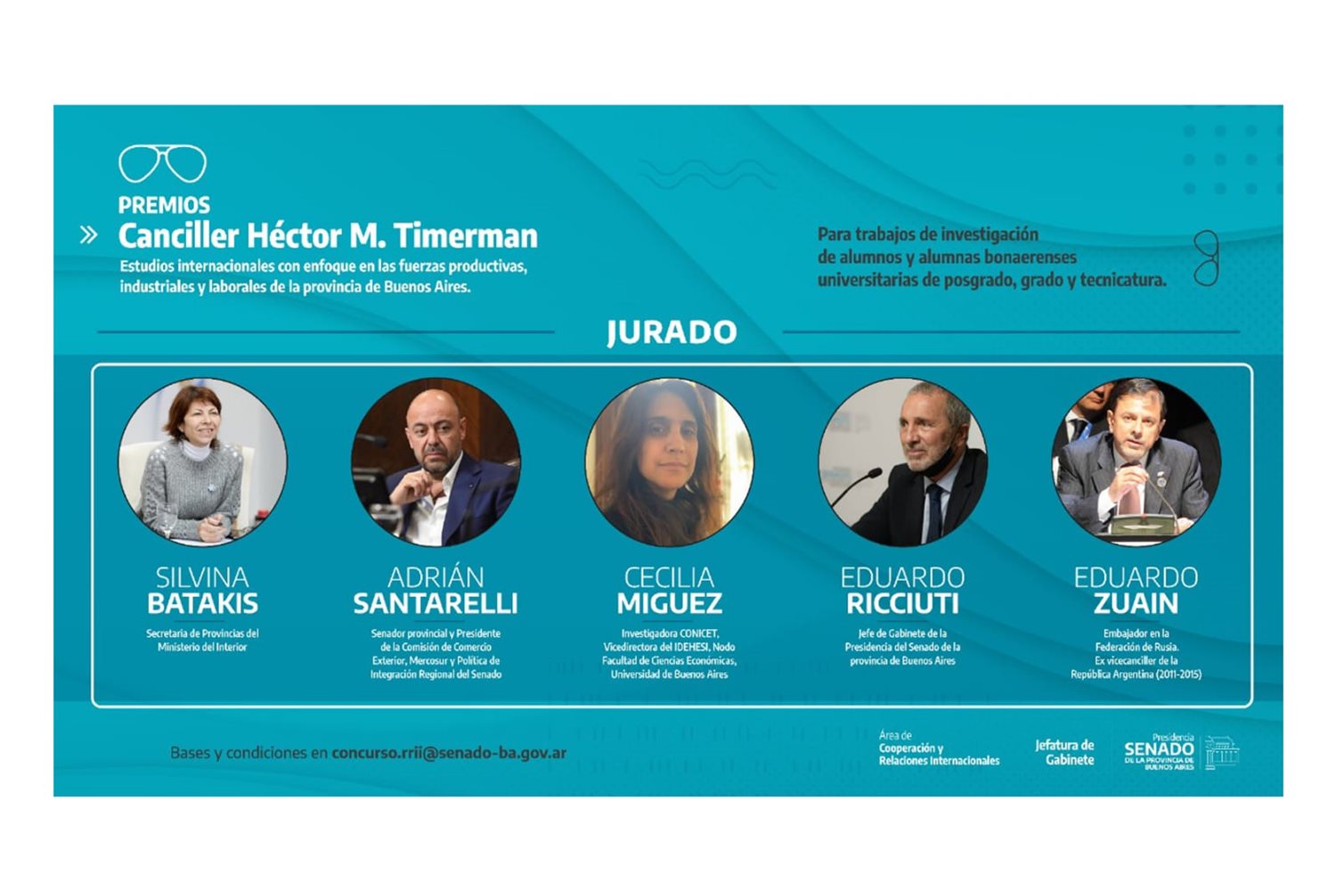 Se encuentra abierta la convocatoria para los premios "Canciller Héctor M. Timerman" de estudios internacionales, con enfoque en las fuerzas productivas, industriales y laborales de la provincia de Buenos Aires.