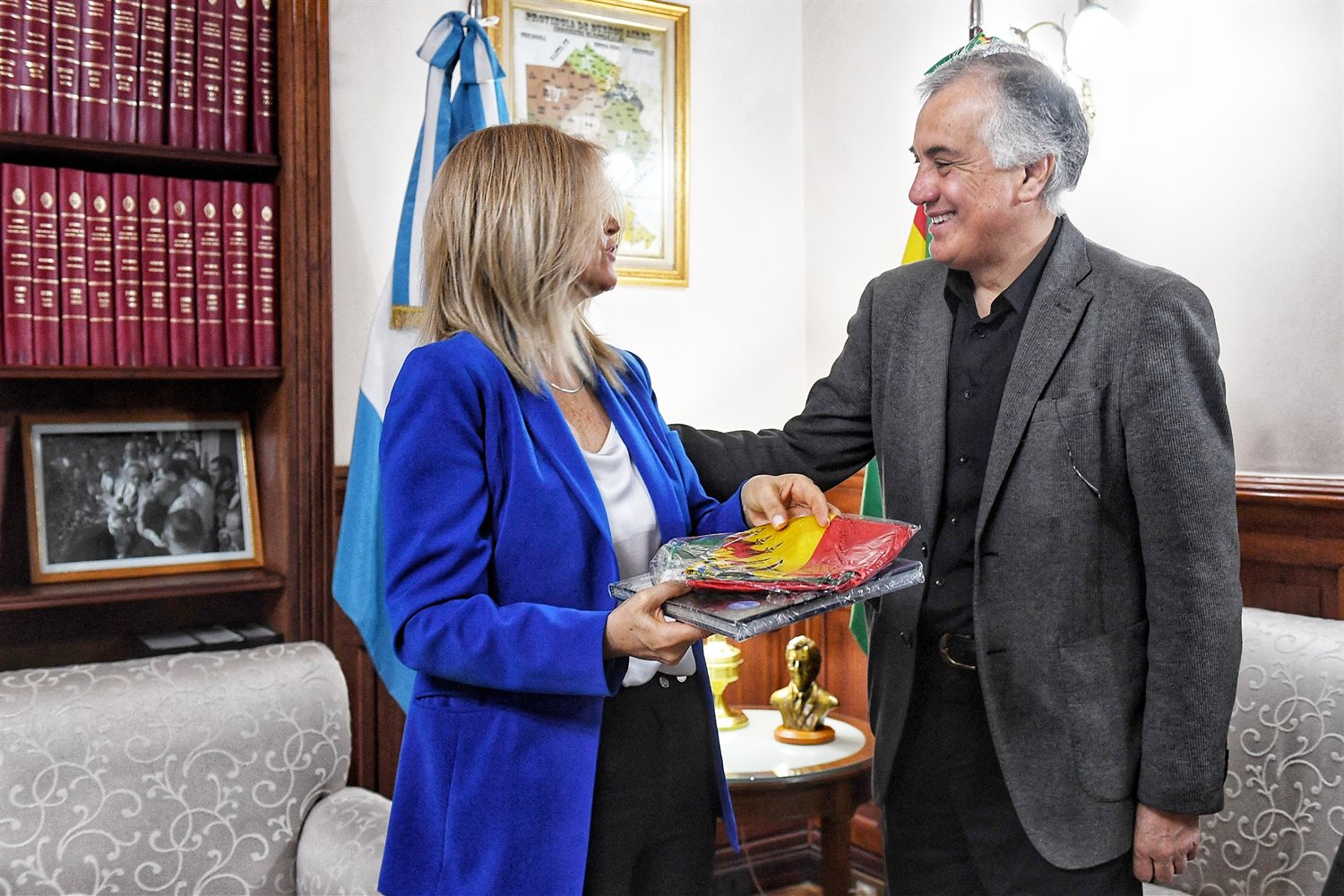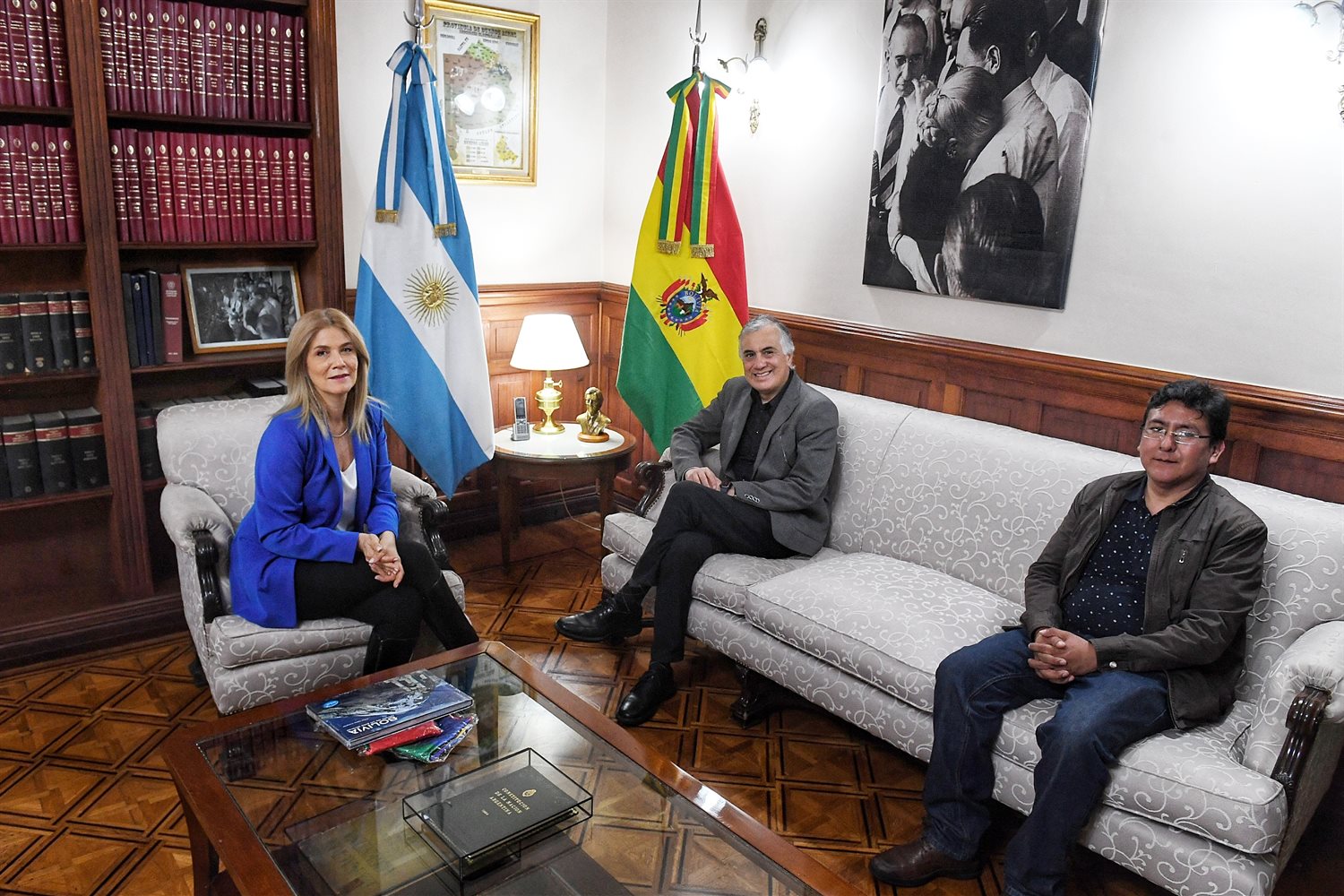 La vicegobernadora bonaerense, Verónica Magario, recibió hoy en su despacho al embajador de Bolivia en la Argentina, Jorge Ramiro Tapia, y al vicecónsul de ese país, Mauricio Pinaya. Durante el encuentro acordaron profundizar la cooperación entre el gobierno bonaerense y la representación diplomática boliviana.