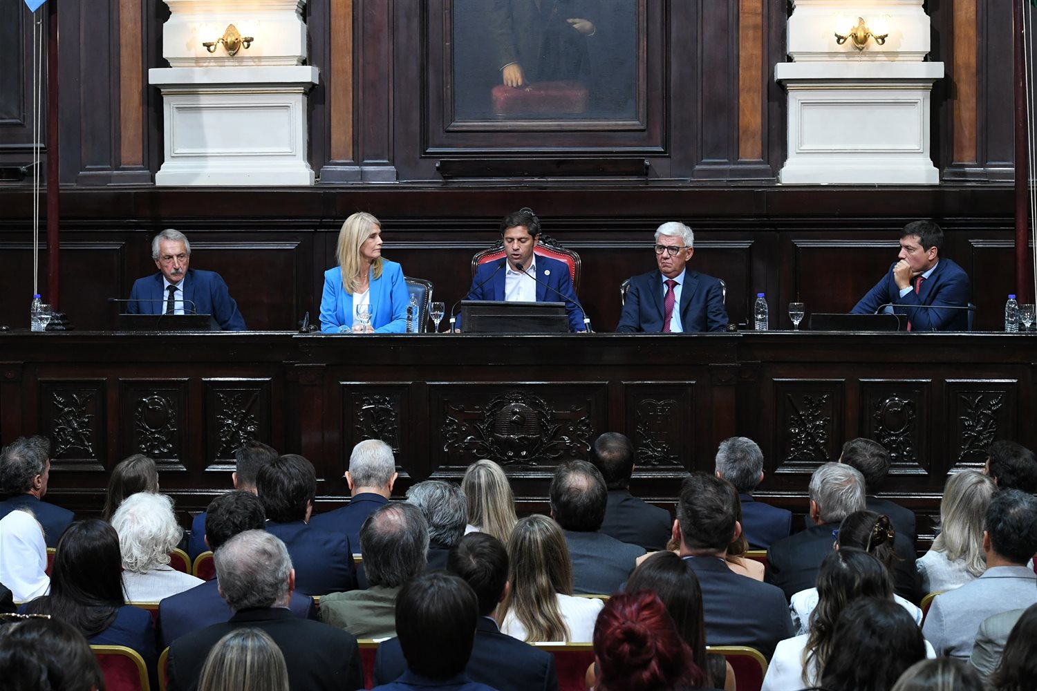 En su mensaje de apertura del nuevo ciclo legislativo, el Gobernador reelecto Axel Kicillof realizó una exhaustiva descripción sobre el estado general de la administración bonaerense y formuló duras críticas al programa de ajuste implementado por el gobierno nacional.