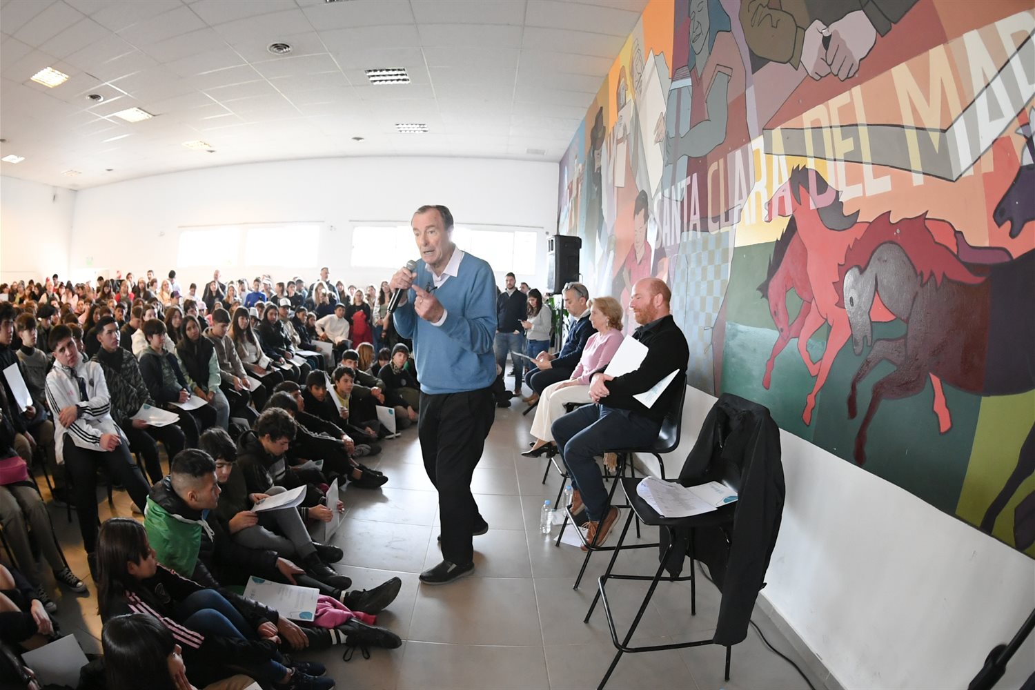 “Veo el compromiso cuando nos juntamos con los centros de estudiantes en las escuelas y hablamos con las chicas y los chicos. Necesitamos que gestionen, que exijan y luchen por lo que creen, que planteen lo que hace falta para el futuro, porque son los principales actores”, indicó el jefe comunal.