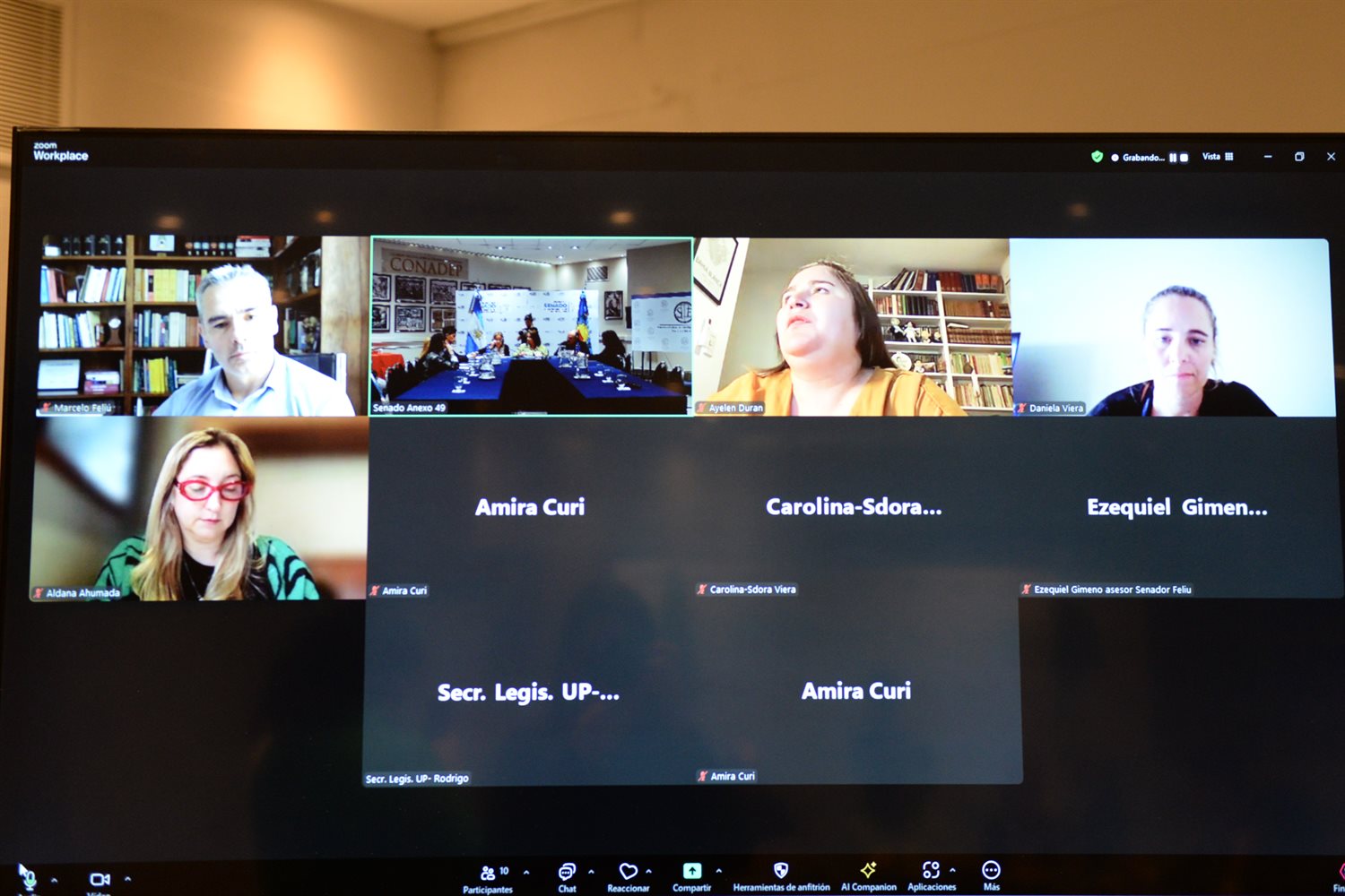 De manera remota participaron Ayelén Durán (Unión por la Patria); Amira Curi (Unión por la Patria); Marcelo Feliú (Unión por la Patria); Daniela Viera (Unión por la Patria), y Aldana Ahumada (PRO).