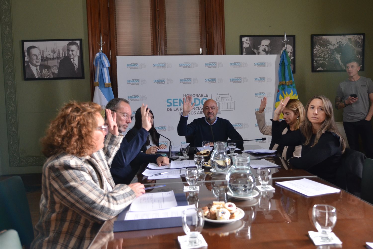 La Comisión de Relaciones Internacionales, Comercio Exterior y Mercosur reunió a sus integrantes en el Salón Antonio Cafiero del Senado Bonaerense para celebrar un nuevo encuentro parlamentario que fue encabezado por el titular del órgano, Adrián Santarelli (Unión por la Patria).