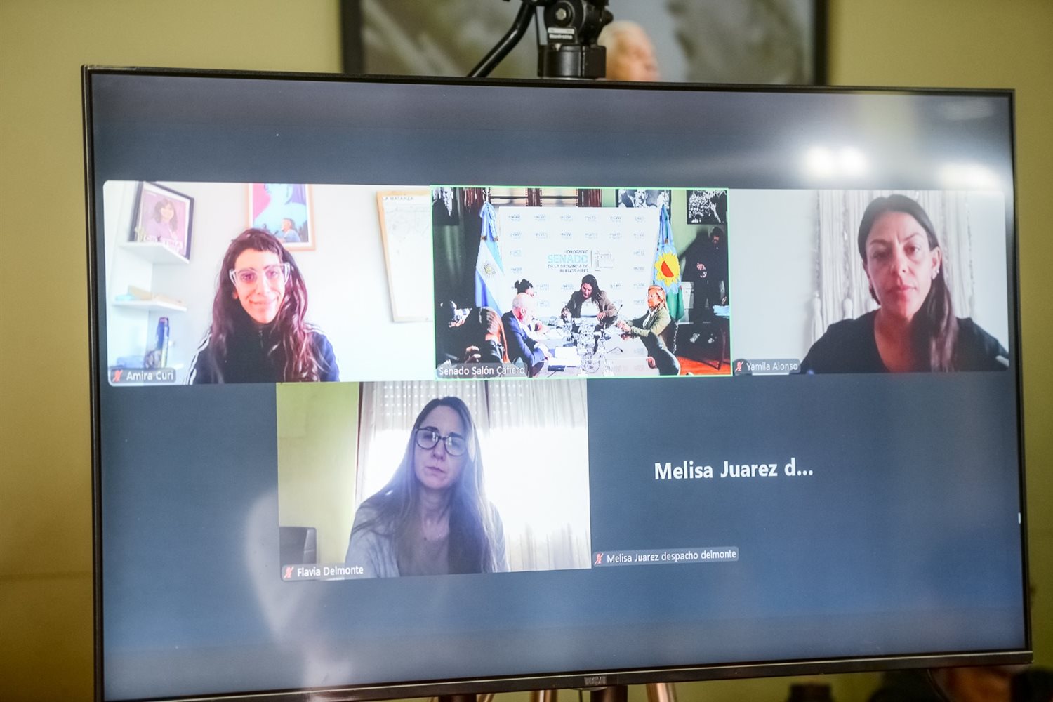 De manera remota participaron Amira Curi (Unión por la Patria), Yamila Alonso (PRO) y Flavia Delmonte (UCR + Cambio Federal).